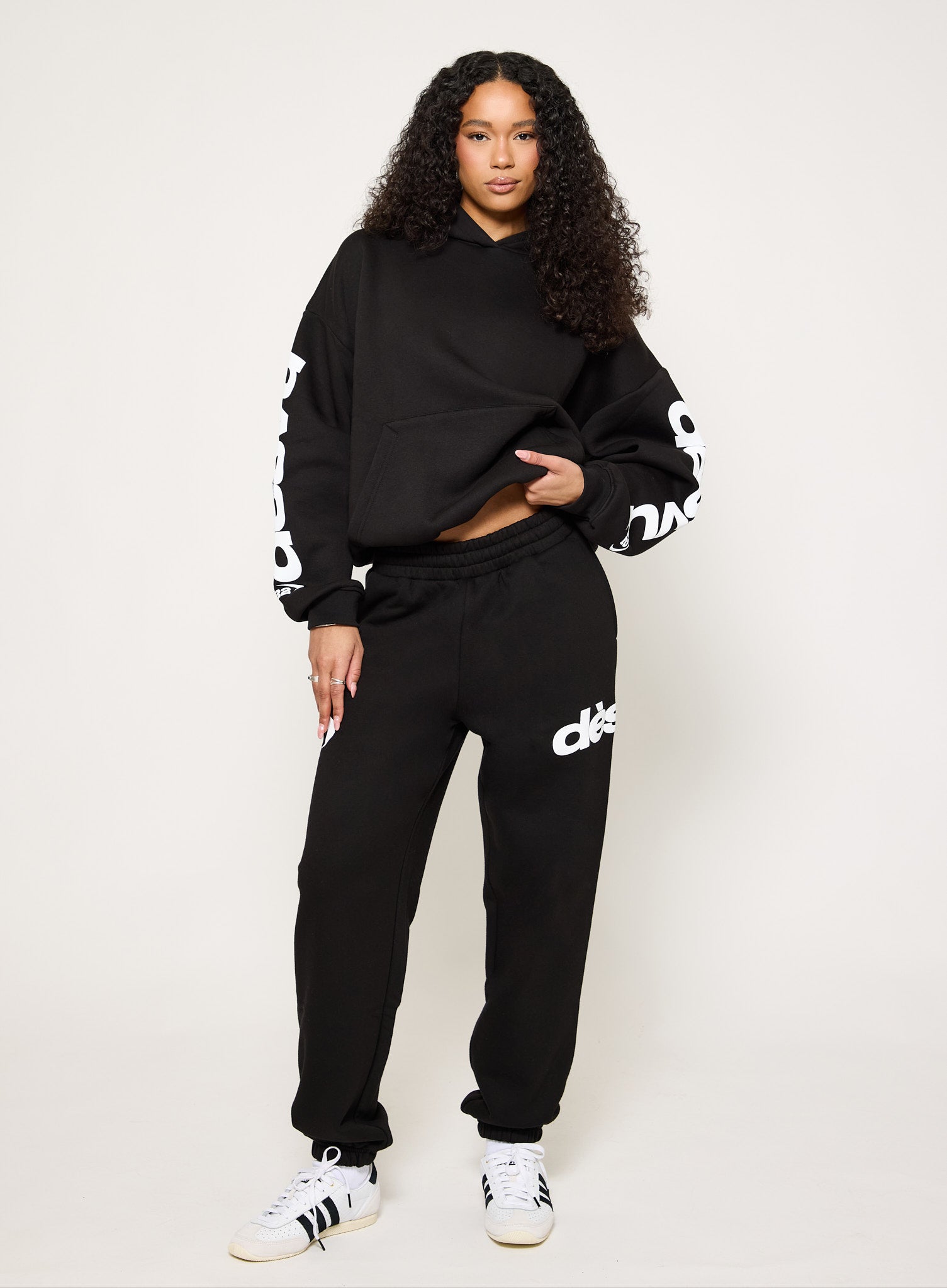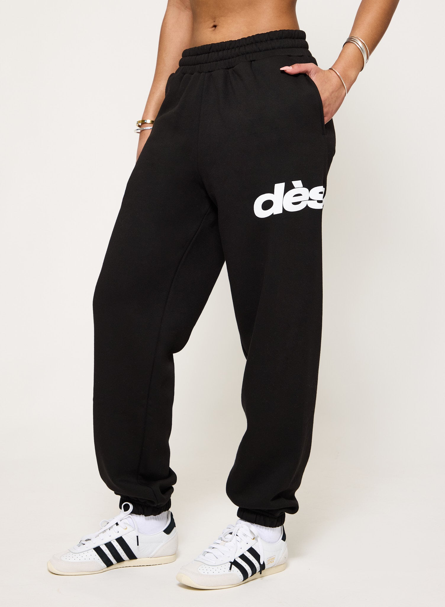 Relaxed through the leg with a cuffed ankle that pulls it together, these are soft, easy, and quietly confident. Elastic waist, signature dès vu branding, and that “threw them on, still look good” energy.