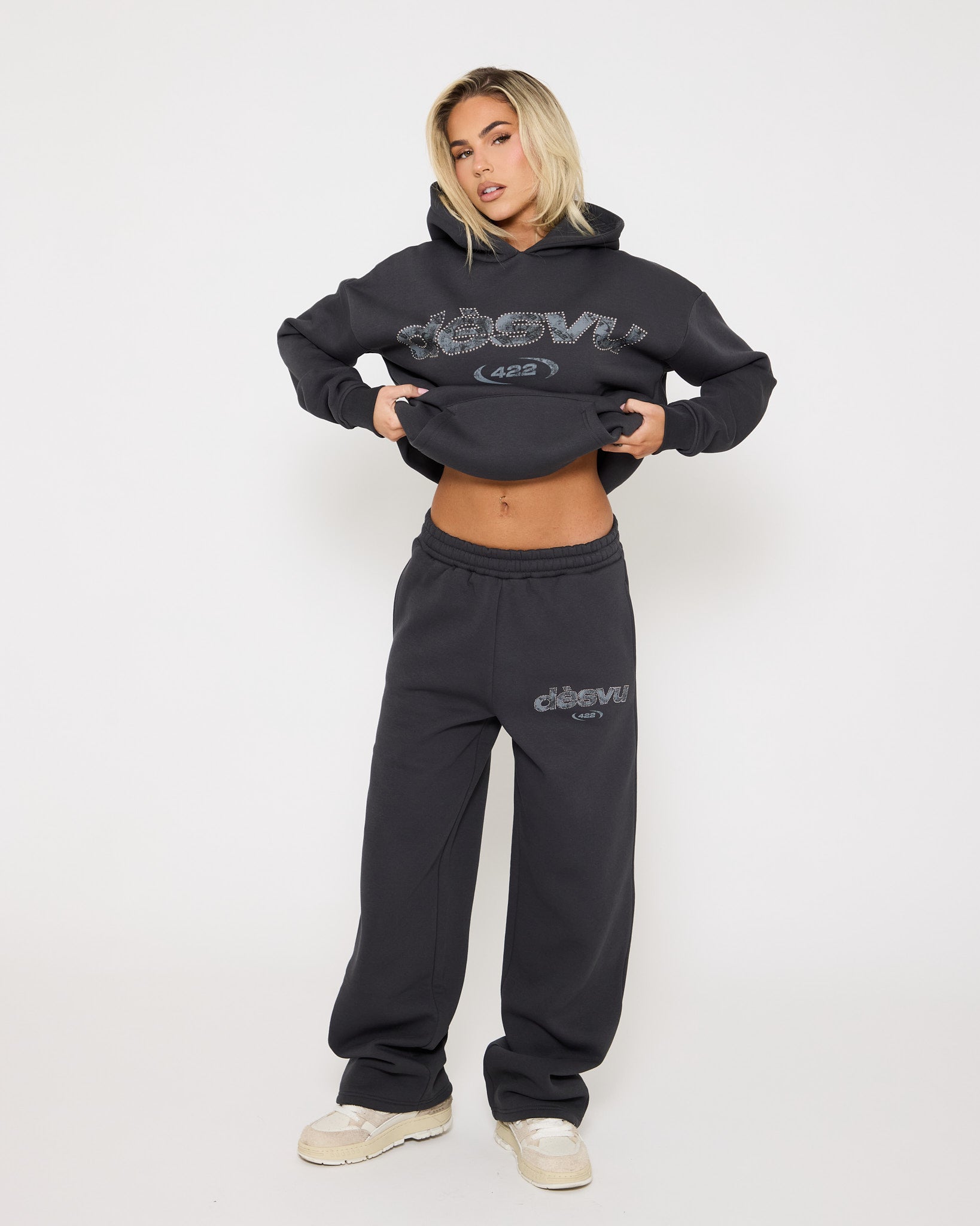 The 422 Asphalt Joggers are made from soft, heavyweight fleece with a slouchy straight-leg fit that hits just right. Designed in a washed charcoal tone with a matching studded dés vu 422 logo on the thigh. Elasticated waistband, hidden drawstring and side pockets for comfort that still looks sharp.