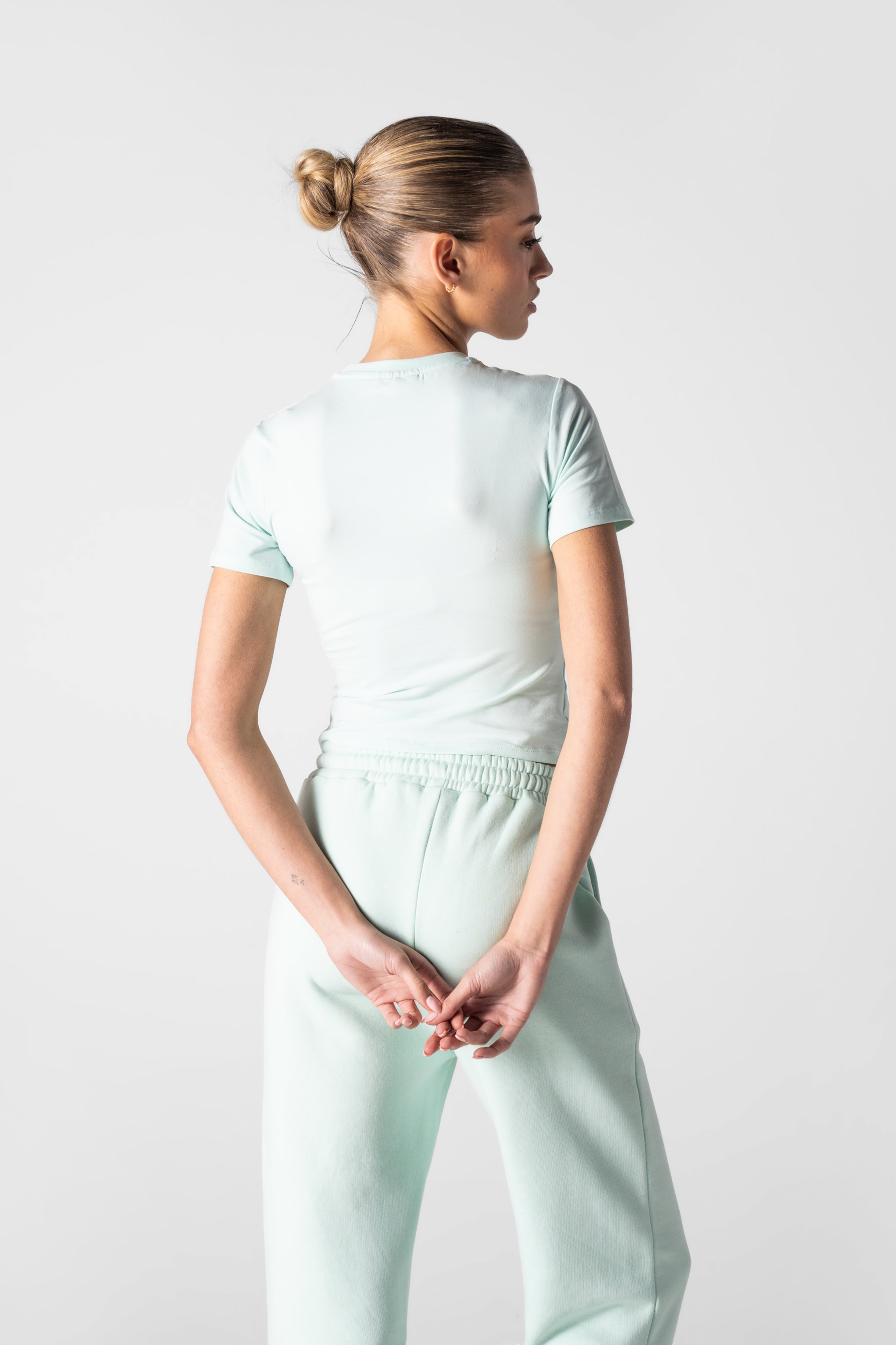 The Mint Bubble Baby Tee is that wear-it-on-repeat essential. Cropped just right, fitted in all the right places, and designed to feel like a second skin. Lightweight, flattering, and effortlessly cool in that "I just threw this on" way.
