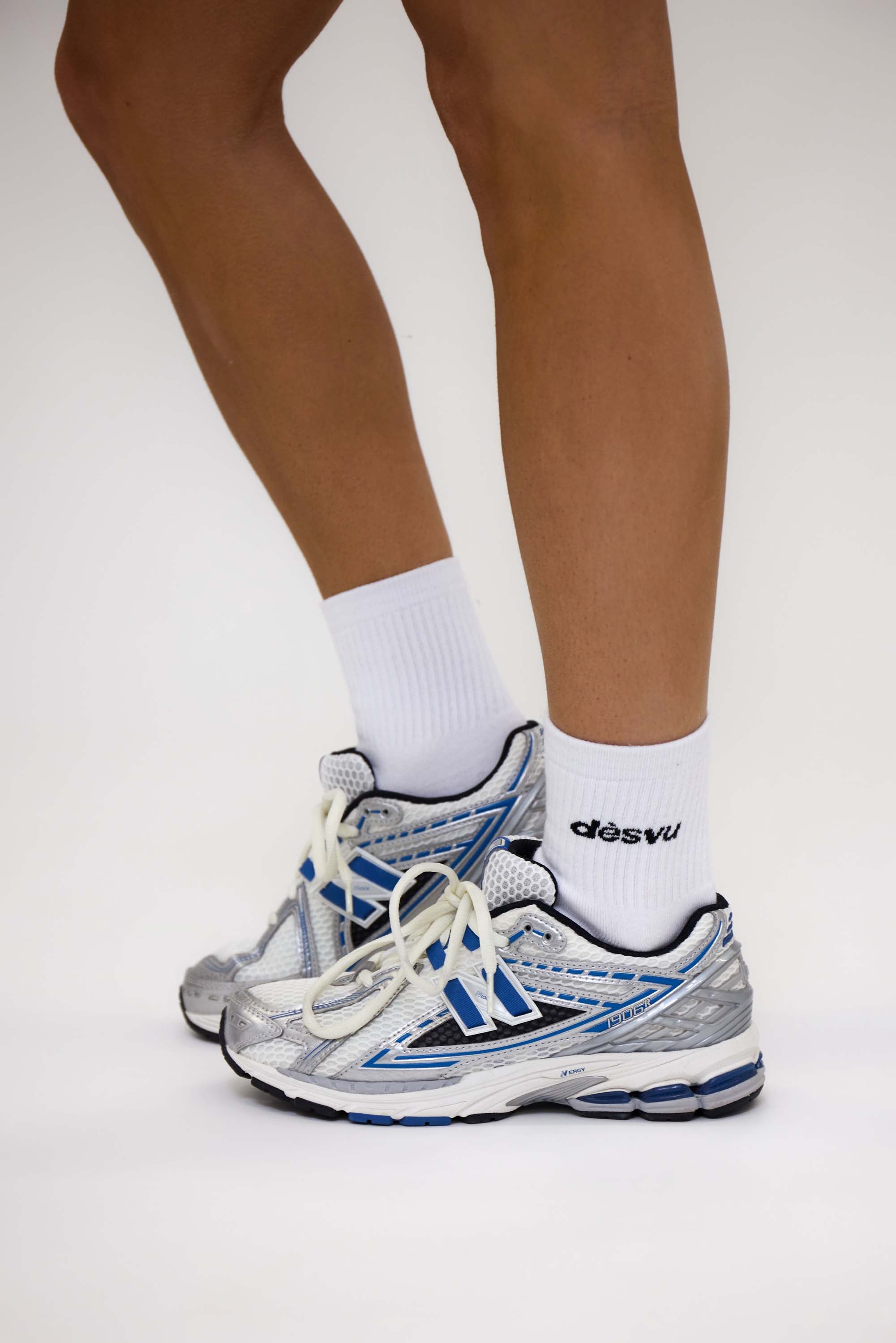 Our super soft cotton ankle socks are perfect to wear with trainers, with Dès Vu branding on the outside of each sock.